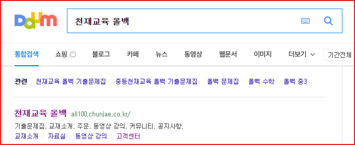 ▲ 천재교육 올백 홈페이지 ☞ https://all100.chunjae.co.kr