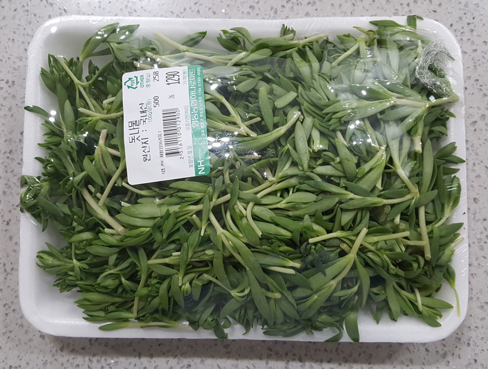 7. 돗나물 258g : 1,290원 - 돗나물의 가격은 100g 당 500원입니다.