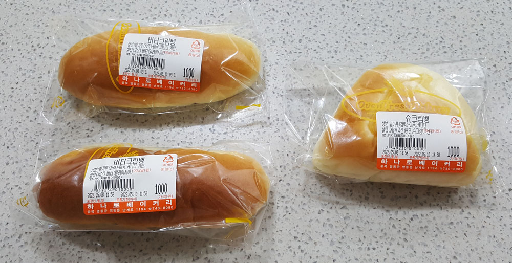 14. 버터크림빵 (하나로베이커리) : 1,000원 × 2개 = 2,000원
